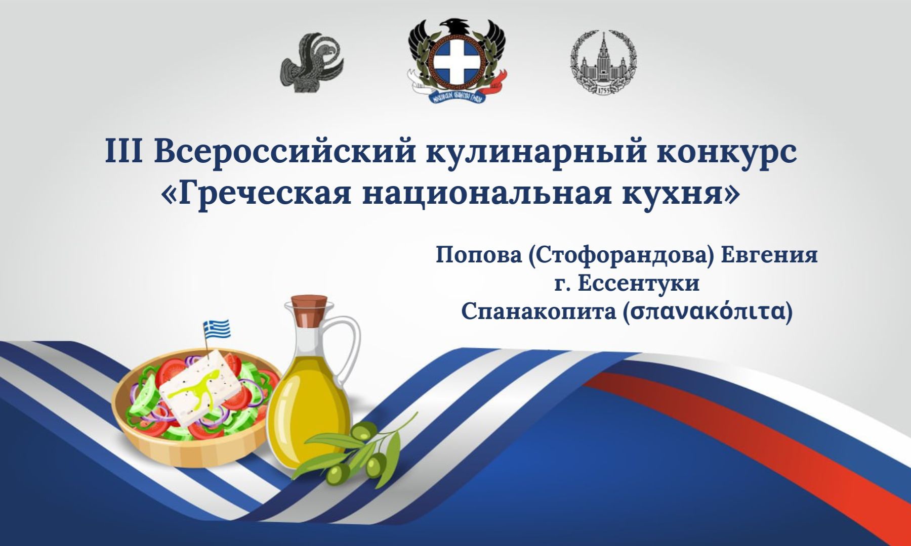 Благодарим всех участников III Всероссийского кулинарного конкурса «Греческая национальная кухня»: Парий Эльвиру,