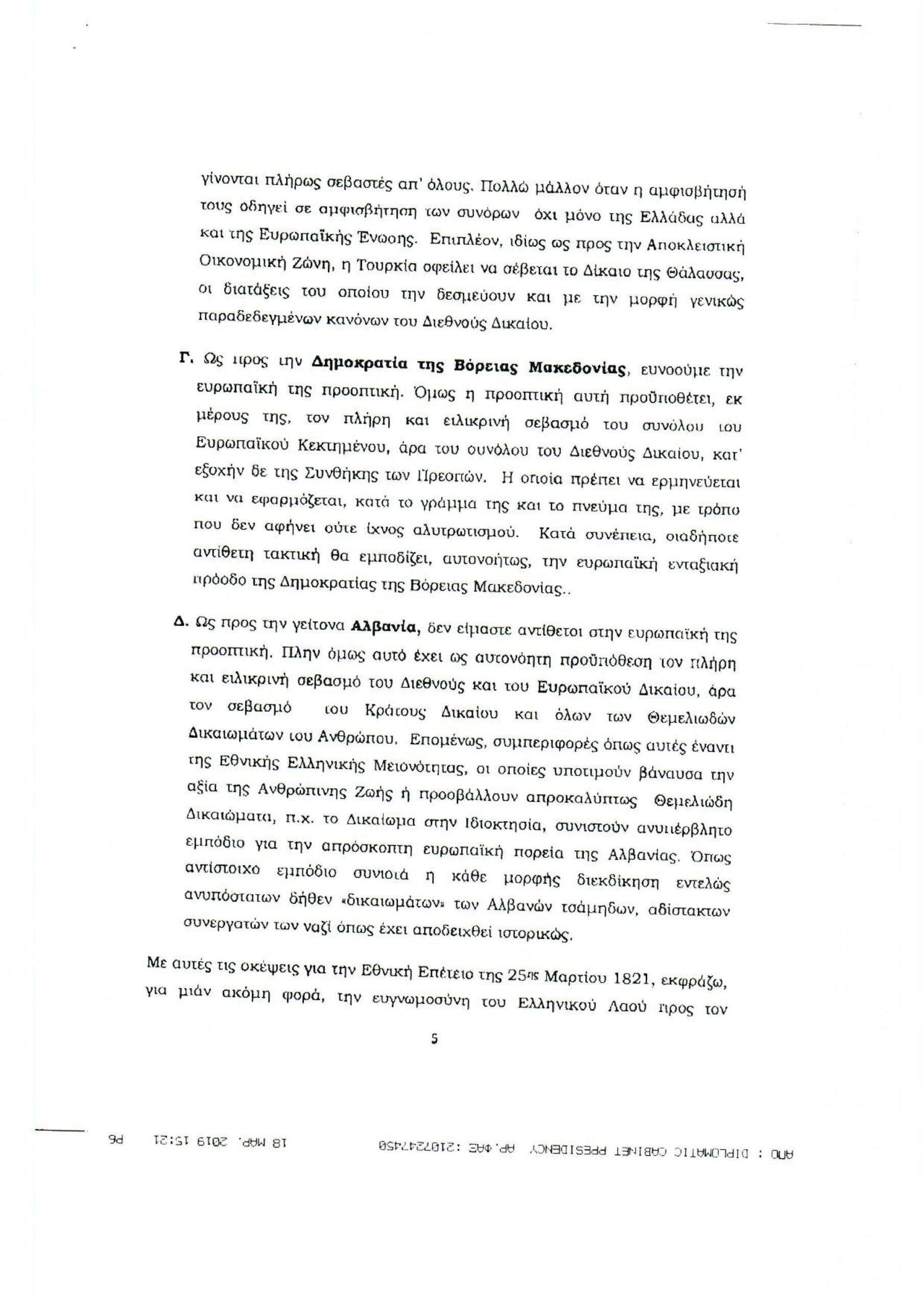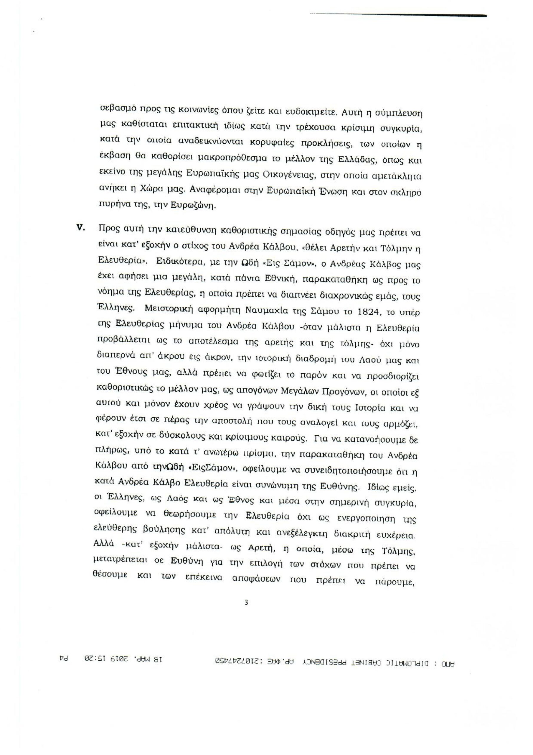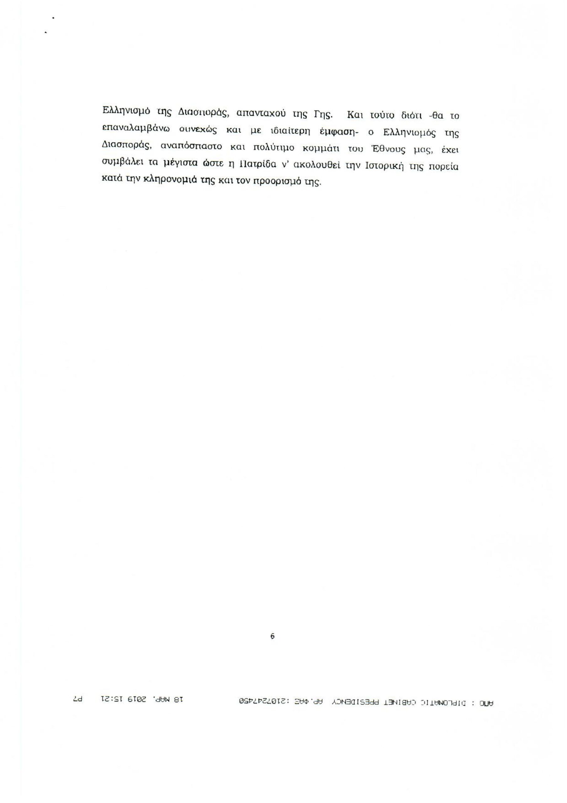 Обращение Президента Греческой Республики г-на Прокописа Павлопулоса ко всем грекам зарубежья, по случаю национального праздника 25 марта