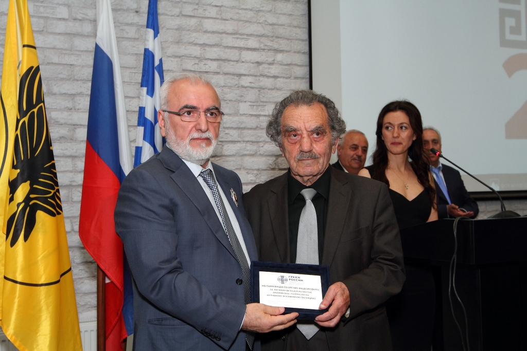 …На торжественном заседании Расширенного Совета Федеральной национально-культурной автономии греков России, проходившем в июне 2017 года в Ростове-на-Дону, оно было приурочено к юбилейным датам 25-летия Российского Объединения Греков и 100-летия исторического Учредительного съезда греков России в Таганроге (1917 г.), Георгий Федорович Меланифиди был награжден президентом ФНКА греков России И.И.Саввиди памятной наградой нашего Объединения «За личный вклад в развитие эллинизма, патриотизм, активную жизненную позицию».