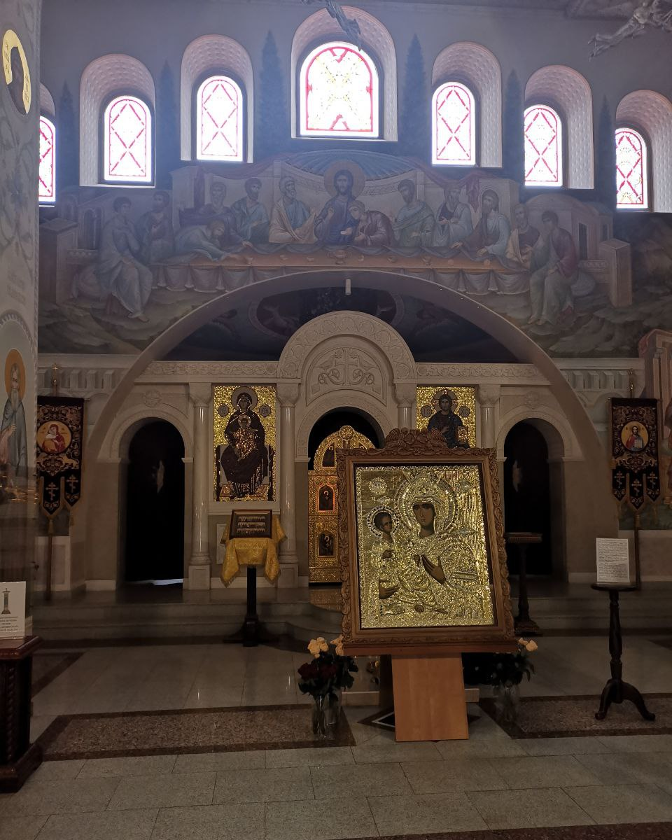 Икона Божьей Матери «Троеручица» написана по благословению епископа Фомы, наместника Троице-Сергиевой лавры (2020—2023). Оригинал находится на святой горе Афон в сербском монастыре Хиландар. Икона написана на Афоне, в скиту святой Анны, в келье старца Папа Яниса. Оклад сделан греческими мастерами в Салониках. Икону заказали, оплатили, привезли российские и греческие предприниматели, православные христиане.