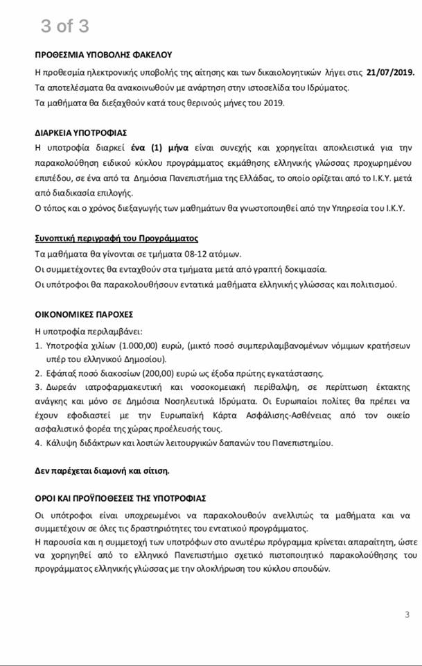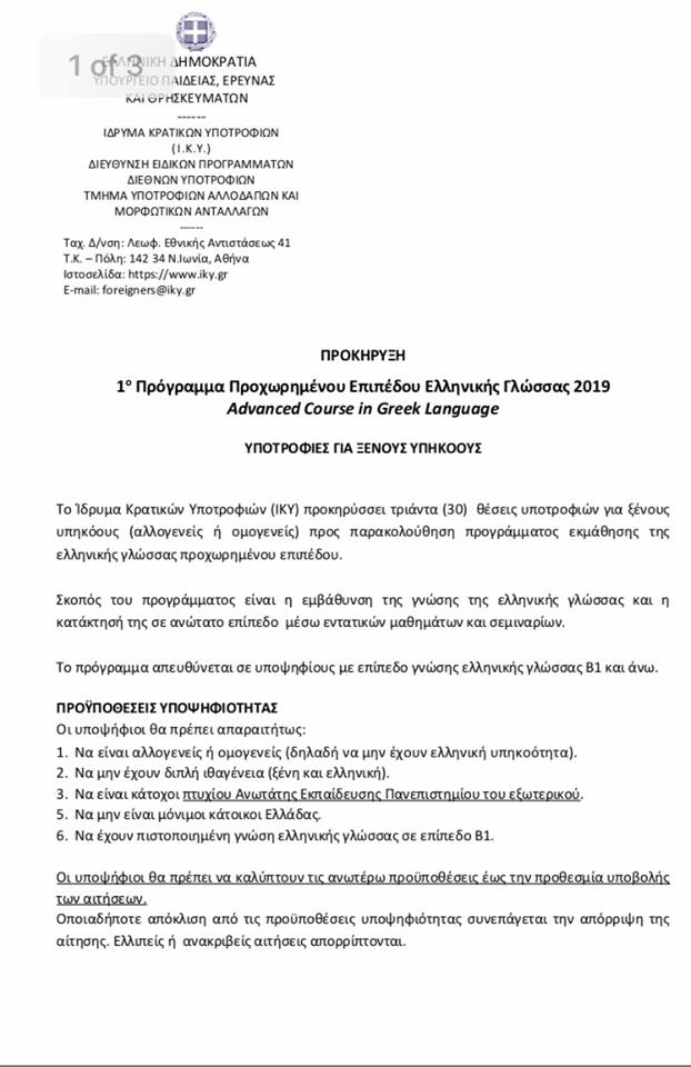 Государственный стипендиальный фонд Греции предоставляет 30 стипендий на изучение новогреческого языка (уровень В1 и выше) на курсах в университете имени Аристотеля г. Салоники.